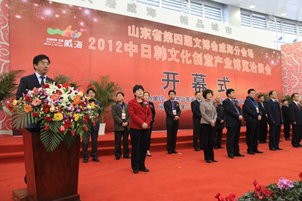 本网讯 创意与市场接轨,文化和科技融合,文化促进产业发展。11月23日上午,以“创意、融合、发展”为主题的山东省第四届文博会威海分会场·2012中日韩文化创意产业博览洽谈会在国际展览中心隆重开幕。