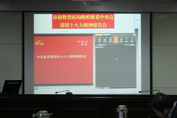 11月29日下午,市畜牧兽医局召开全体干部职工会议,组织收听收看中央宣讲团党的十八大报告会。