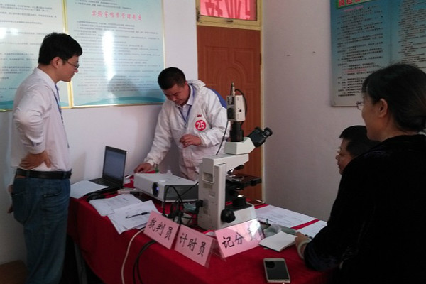 竞赛选手经各区县预赛选拨,组成4支代表队,共有29名选手参加了比赛。本次竞赛活动共分为考前培训指导、理论考试、现场技能操作三个阶段进行,邀请了山东畜牧兽医职业学院张世卫教授、胡文平教授进行授课并担任竞赛主裁判。理论考试从国家职业技能鉴定家畜繁殖工考评题库中随机抽取试题;现场技能操作考核4个项目,分别为种猪常温精液活力检测、畸形率检测、剂量检测、呈直线前进运动精子数检测。