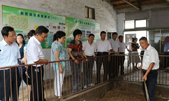 (调研组一行到东港区盛旺养猪场调研新型清洁养猪法)