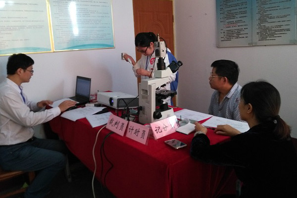 竞赛选手经各区县预赛选拨,组成4支代表队,共有29名选手参加了比赛。本次竞赛活动共分为考前培训指导、理论考试、现场技能操作三个阶段进行,邀请了山东畜牧兽医职业学院张世卫教授、胡文平教授进行授课并担任竞赛主裁判。理论考试从国家职业技能鉴定家畜繁殖工考评题库中随机抽取试题;现场技能操作考核4个项目,分别为种猪常温精液活力检测、畸形率检测、剂量检测、呈直线前进运动精子数检测。