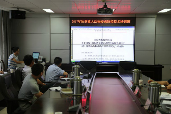 会议传达学习了2017年全省秋季重大动物疫病防控技术培训班会议精神;市疫病预防控制中心韩勇科长就动物疫病监测、采样、布病基线调查、布病净化场的创建等方面进行了细致的讲解;范承祥科长重点讲解了疫苗调拨管理、耳标等防疫物资的申请、高致病性禽流感、牲畜口蹄疫、小反刍兽疫、布病等防控新技术;会议还就无疫区维持、兽医实验室续展验收、疫情管理、病死畜禽无害化处理、检疫监督、和布病、结核病、狂犬病的防控等内容进行了交流。市畜牧兽医局刘寒冰副局长出席会议并讲话,重点分析了当前疫情形势,回顾了2017年上半年全市动物疫病防控、监测、检疫监督、人畜共患病防控、病死畜禽无害化处理等工作,指出了存在的问题,并对2017年秋季重点工作进行了安排和部署。通过培训,全市各级疫控机构和动物卫生监督机构技术骨干人员理论水平得到进一步提升,为即将开展的秋季重大动物疫病防控工作打下了坚实的基础。